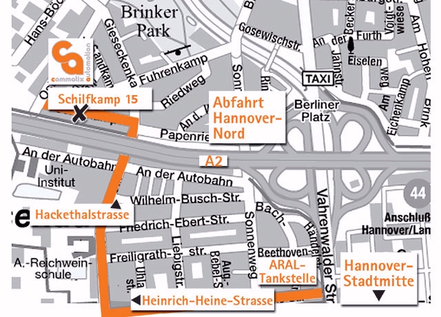 • Über die Autobahn A2, Abfahrt Hannover Nord kommen Sie auf die Vahrenwalder Straße.